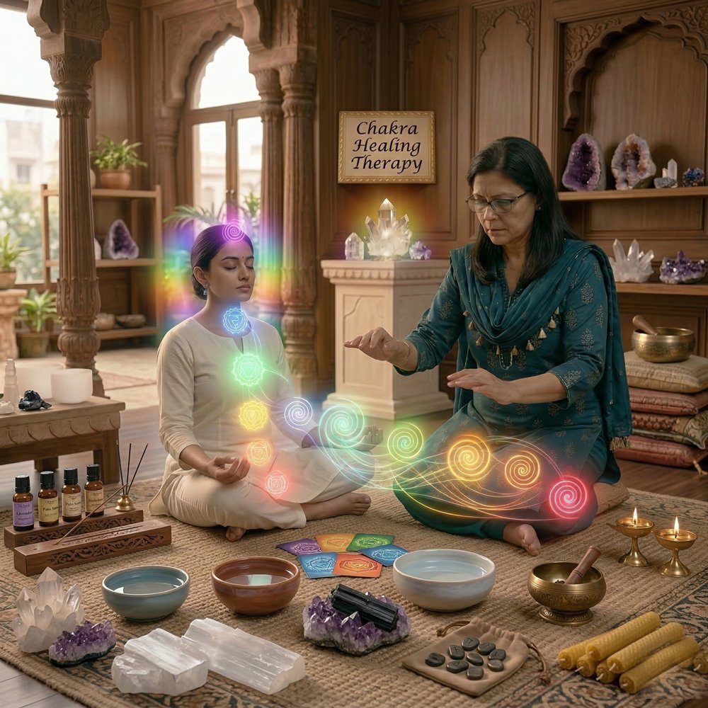 Chakra healing focuses on balancing the body’s seven energy centers that influence emotional and spiritual well-being. This therapy helps clear energetic blockages, improve inner harmony, and support a healthier flow of positive energy.